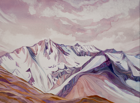Painting tiny flowers and stems. Layering them over and under. Darkening places where it’s shadowy and leaving gaps where the light shines through. Imagining the way they might move in the wind. Bending and swaying. Mt Baker steady in the background.