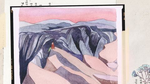 A lot of the paintings that I create in the mountains are more like personal journal pieces that either serve as a memento or as a reference for larger pieces that I create in my van or when I’m out of the mountains. My general style is quite slow and layered, but the mountains lend themselves to free brushstrokes that depict the energy of the moment. Sometimes, the wind whips the paint across the paper, sometimes, there are dirt smudges, etc. They are living time capsules of the adventure. This space is for sharing the backstory so that you can see a little more of the process behind the creations.